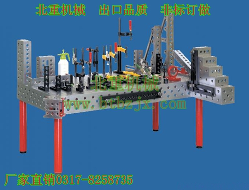 三維柔性焊接平臺(tái)是三維柔性焊接工裝的基礎(chǔ)平臺(tái),有鑄件和鋼件兩種材質(zhì)。相比于傳統(tǒng)的焊接平臺(tái),三維焊接平臺(tái)由一個(gè)工作面拓展成五個(gè)工作面,在每個(gè)工作面都均勻分布有直徑16mm或直徑28mm的圓孔,配合三維柔性焊接夾具,將需要加工的工件固定和定位后,進(jìn)行焊接加工。